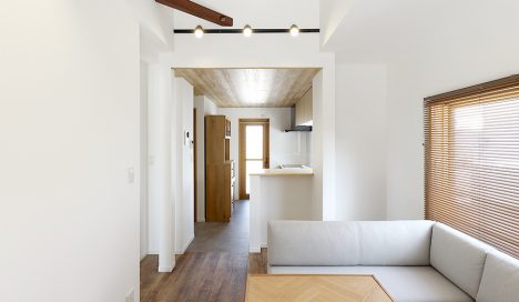 LDKと和室の間にあった壁を取り払い、ゆったりとした開放感のあるLDKにしました。リビングとつながるように設けたベッドルームは、仕切りを最小限にすることで、ワンルームのような広がりを持たせています。朝はベッドルームにも陽ざしが差し込み、気持ちよく目覚めることができます。また、仕切り壁には明かり窓を設け、日中は窓を開けて心地よい風を通し、夜は閉めて落ち着いた雰囲気にするなど、その時々の過ごし方に合わせて調整できます。来客時にはプライベート空間を確保でき、生活のシーンに応じて柔軟に使い分けられます。