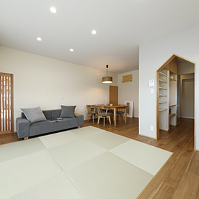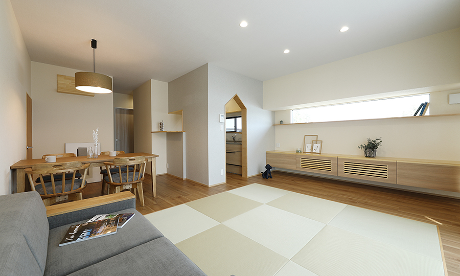 畳の上でごろりと横になったり、ソファでゆったり会話を楽しんだり。家族それぞれが思い思いに過ごしながらも、同じ空間でつながりを感じられるのが魅力です。
