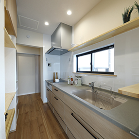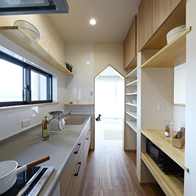 キッチンには便利な収納棚も造作