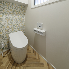 アクセントクロスが印象的な、落ち着きのあるトイレ