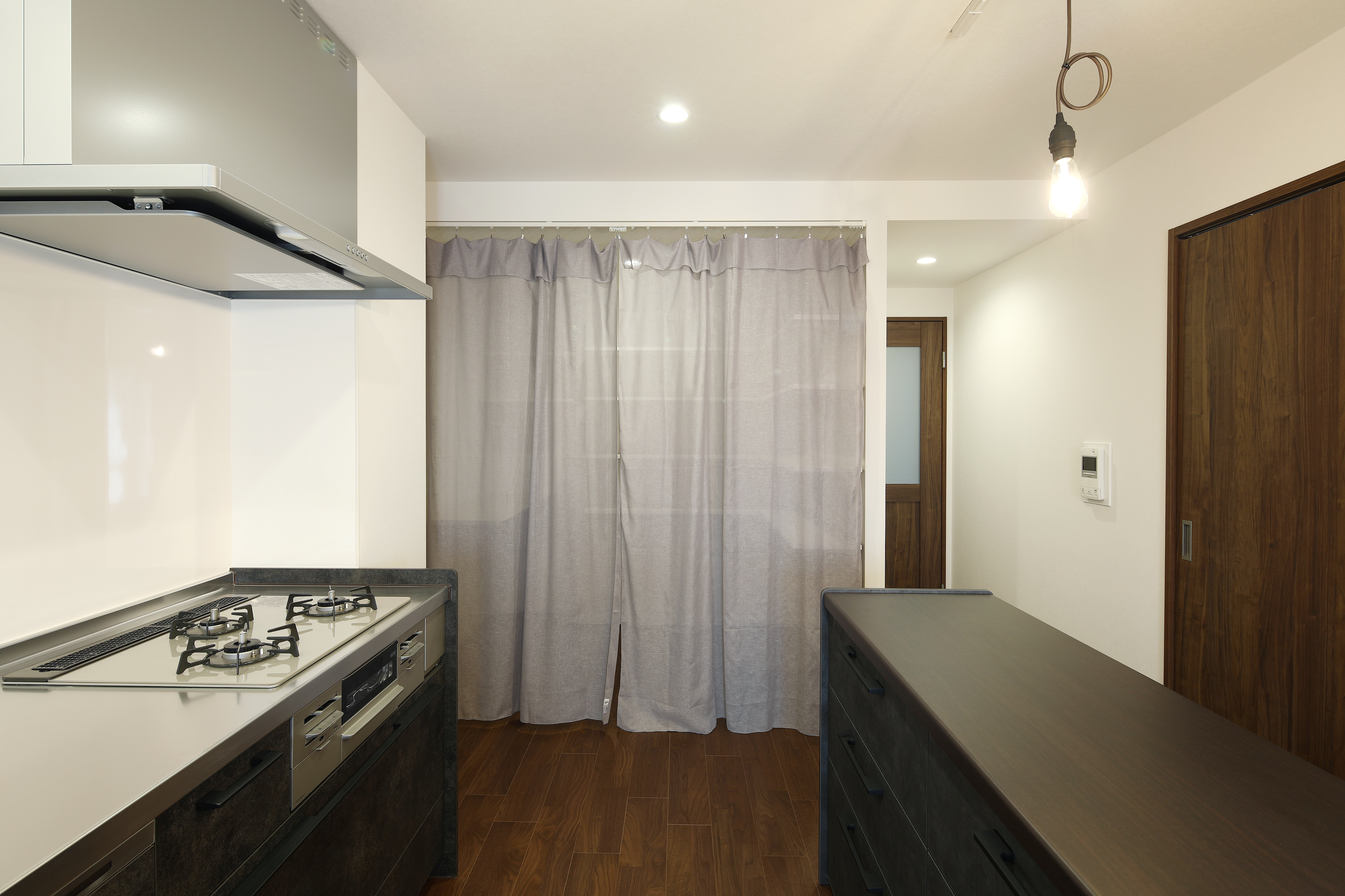 カーテンを閉めるとこんな感じになります。程よく透け感があるのがいいですね!