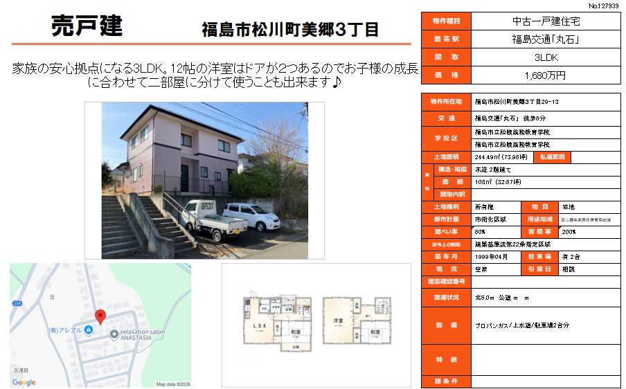 福島市松川町美郷三丁目 3LDK 1,680万円